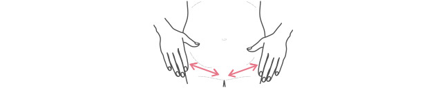 2.妊娠線が一番できやすい下腹部を上から下へらせんを描くように。
