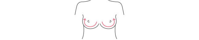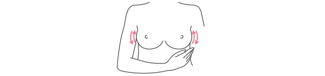 2.乳房と反対側の手を乳房の下に当て、押し上げて下に戻します。