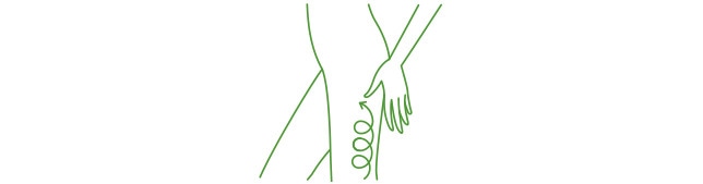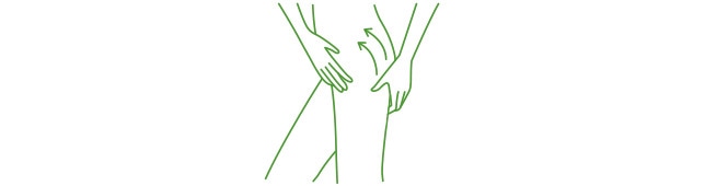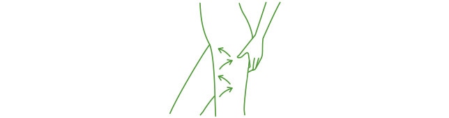 3.手のひら全体を使い、太ももからヒップにかけて下から上に大きくらせんを描くようにマッサージします。
