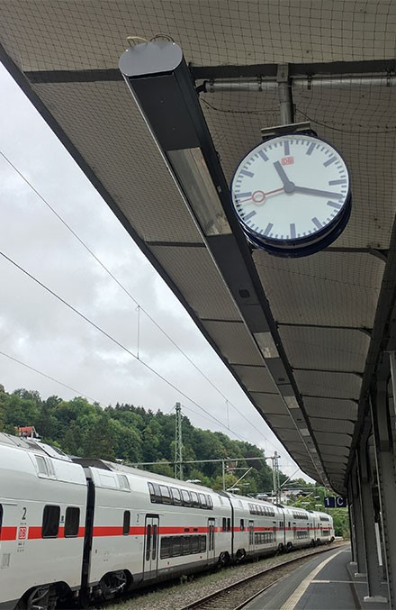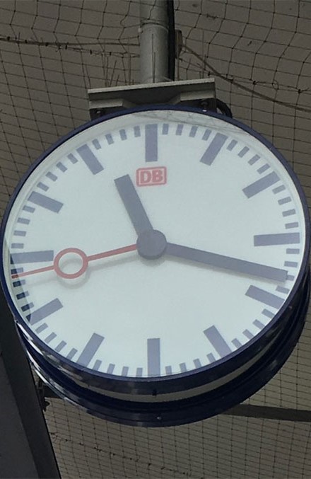 それから少し経ってから、この掛け時計がモンディーン社のものでデザインはスイス鉄道のエンジニアであったヒルフィカーという人が1944年に設計した結構著名な時計であることを知り、道理で強烈なインパクトを受けたわけだと納得しました。そしてドイツとオーストリアの鉄道のホームにも似たようなデザインの時計があることに気づいたのですが、スイス鉄道のオリジナル時計ほどのインパクトを受けず、どうも全体的に線が細い印象で、おそらく亜流だからだろう…と思っていました。