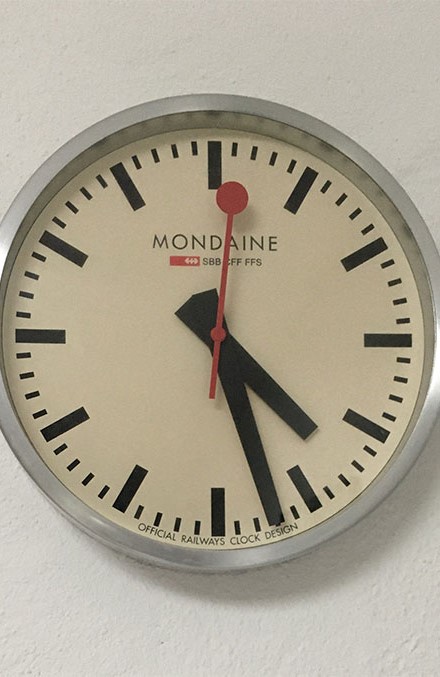 爾来30年、ふとスイス鉄道とドイツ鉄道の時計の相違はまだあるのだろうかと思い立ち、グミュントの小さな駅にある時計を見て驚きました。小生の止まってしまった掛け時計と、秒針の形が違うだけで他はほぼ同じで、しいていえば以前と違ってドイツ鉄道の時計の方が時と分を示す線がスイス鉄道のものより太い長いくらいで、記憶とは逆です。念のためスイスのバーゼルSBB駅のホームにある時計の映像と比較しても同様に感じました。スイスとドイツの鉄道時計がさらに似通うことになるのは避けてほしいところです。