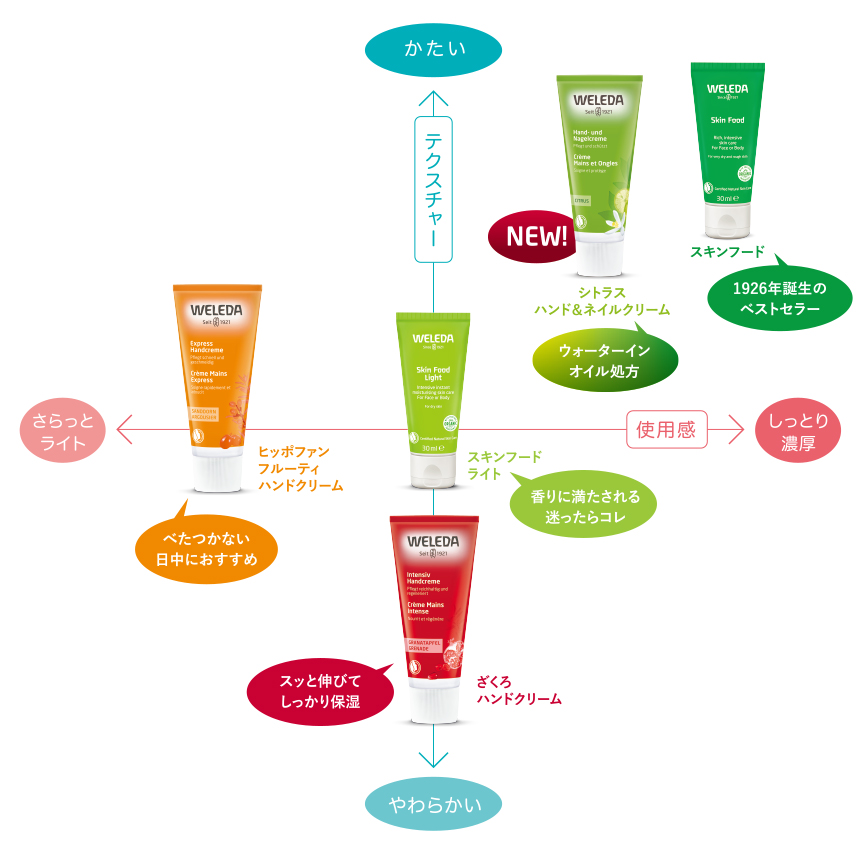 テクスチャーや香りだけでなく、肌の悩みやライフスタイルによって選べるヴェレダ ハンドクリームシリーズ。是非ご自身にあった最適なハンドクリーム選びの参考にしてみてくださいね。