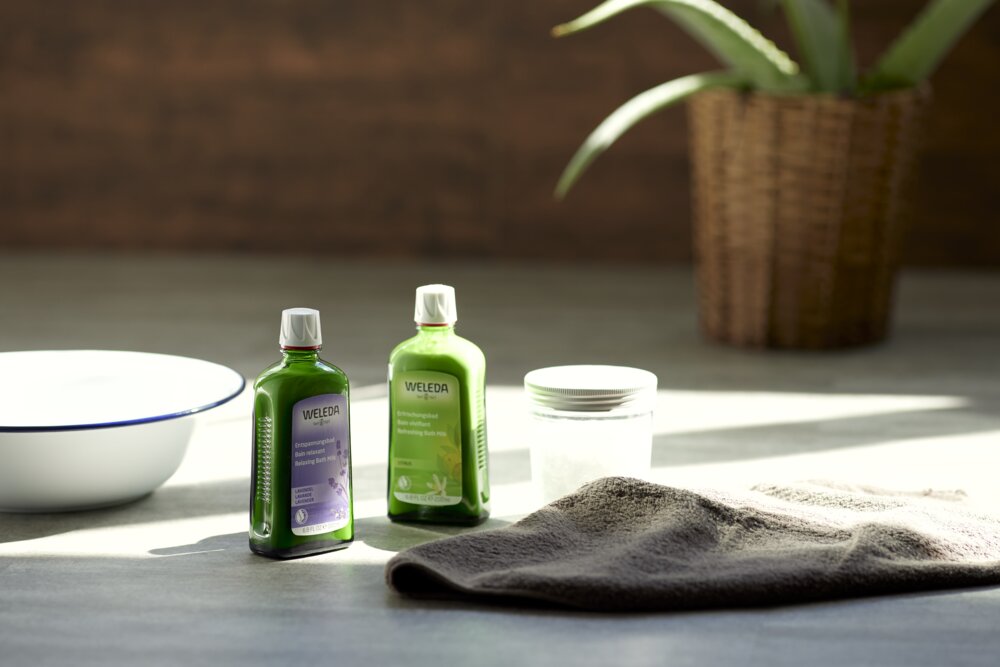 ヴェレダのバスミルクは、お湯に入れると肌当たりがなめらかになり、湯気とともにナチュラルな精油の香りが立ち昇ります。
