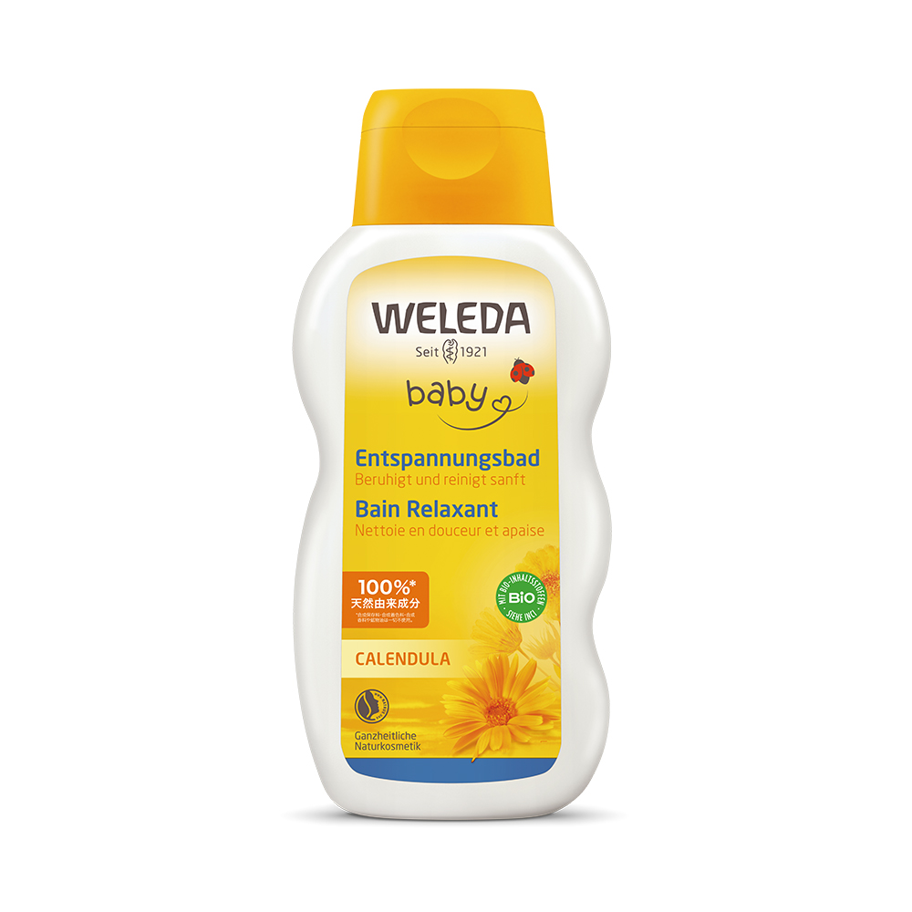 カレンドラエキスがお湯に溶け出し、肌にしっとりとしたうるおいを与えるベビー用のバスミルク。心地よいハーブの香りに包まれて、穏やかな気分でゆったり入浴できます。