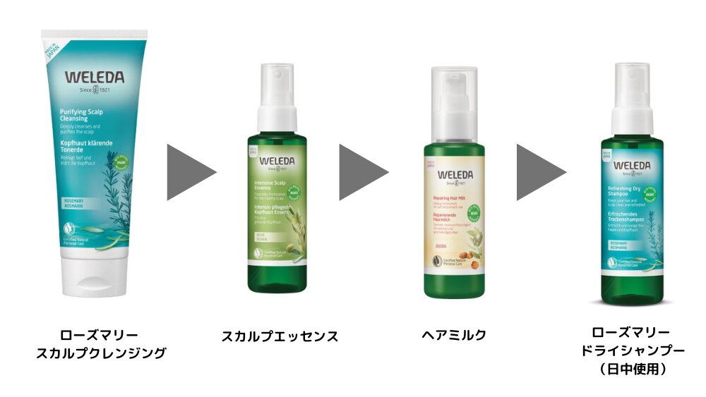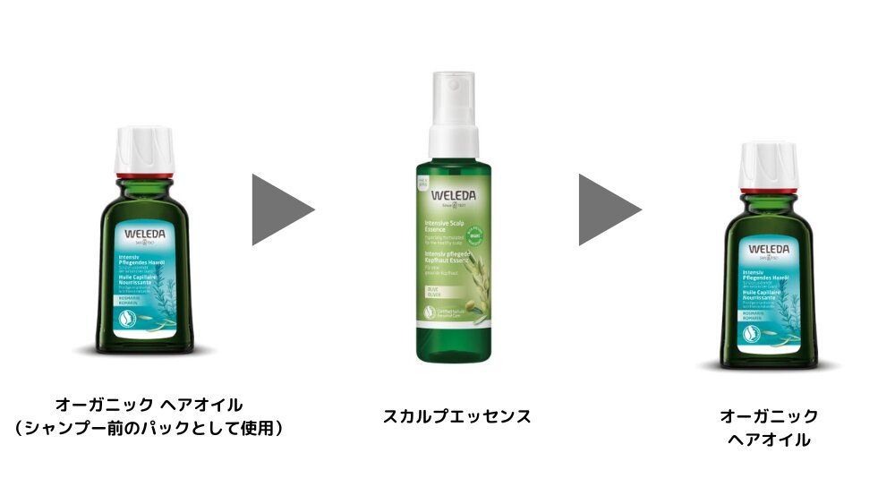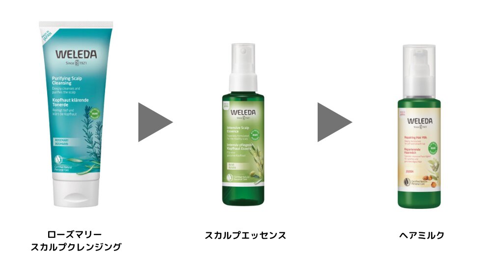 ここまで紹介したアイテムを、頭皮や髪の悩み別でオススメの組み合わせをご紹介します。1種類からでももちろんご使用いただけますが、集中ケアとしての使用方法として、併せ使いも是非参考にしてみてくださいね。