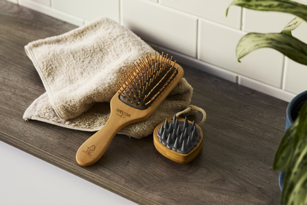乾いた髪に使用するパドルブラシと、シャンプー時やマッサージに適したお風呂で使えるヘッドスパブラシをご紹介します。