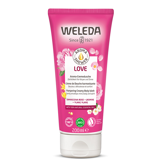 ヴェレダ アロマシャワー ラブ「洗う」を「保湿」に。植物のみずみずしさ広がる香りのシャワー。肌を優しく洗い上げる弱酸性ボディウォッシュです。クリームタイプで、しっとりなめらかな洗いあげます。ダマスクローズブレンドの、ロマンティックな花の香り。