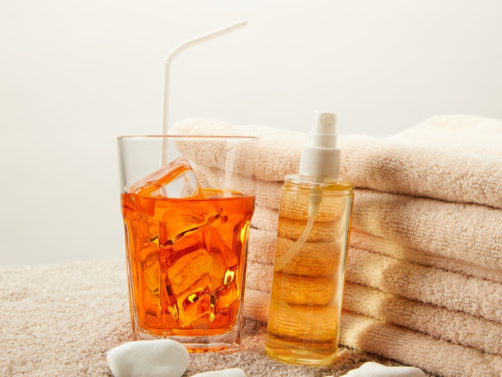 ノンカフェインのドリンクなら夜の睡眠を妨げることもないので、カフェインレスのお茶やハーブティーなどがおすすめ。お砂糖を控えたフルーツドリンクやハーブウォーター、フラワーウォーターなど、いつもよりちょっと贅沢でヘルシーなノンカフェインドリンクでお風呂時間をグレードアップさせるのもいいですね!