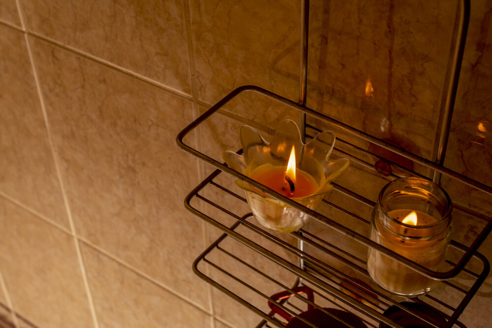 バスルームの電気を消して、キャンドルを焚くのもおすすめ。