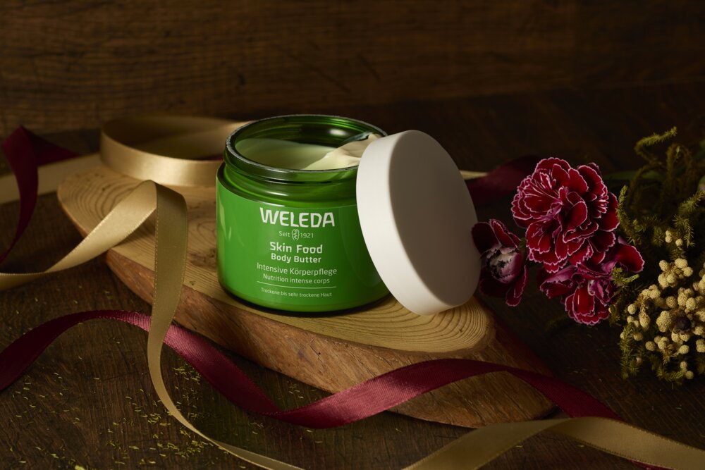 鮮やかなグリーンのパッケージが印象的な「スキンフード ボディバター」は、ホリデーギフトにも映える人気のアイテムです。