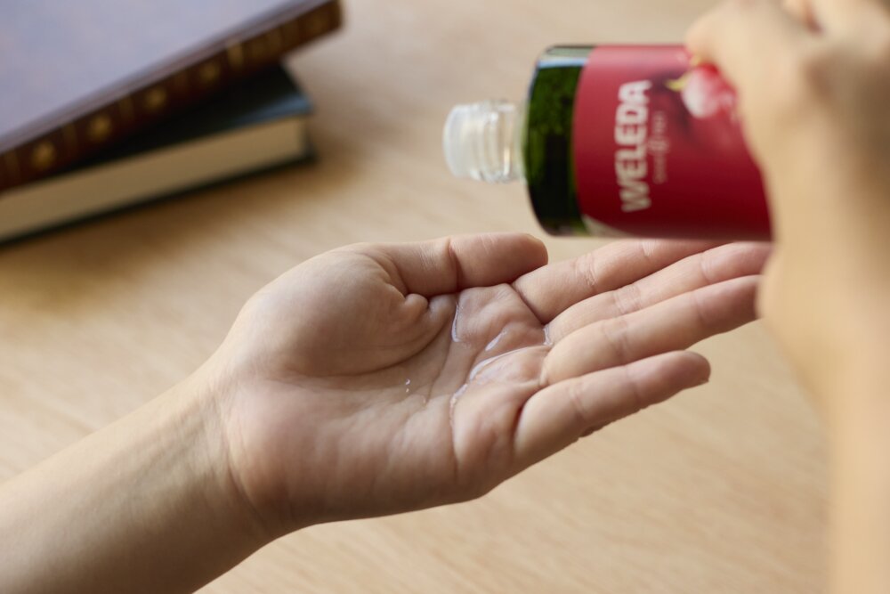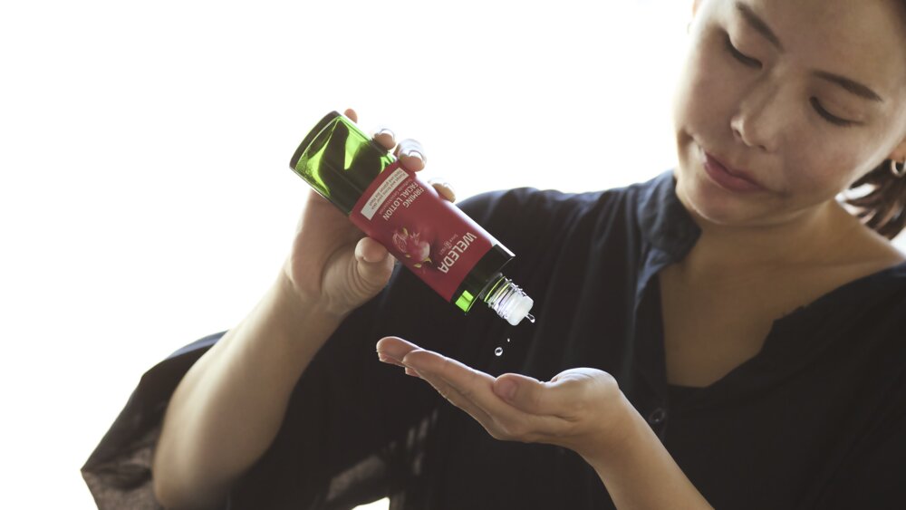 適量手にとり、顔になじませます。首やデコルテにもご使用いただけます。