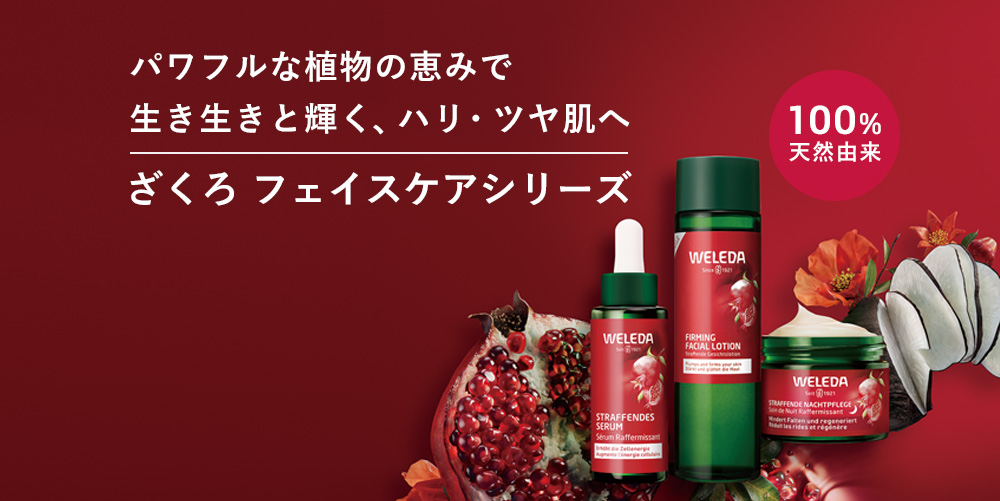 「ざくろ フェイスケアシリーズ」は、ヴェレダが100年にわたって培ってきた植物研究の集大成ともいえる自信作。成分や肌へのアプローチはもちろん、手に取った瞬間の香りや使い心地にまで、とことんこだわりが詰まっています。