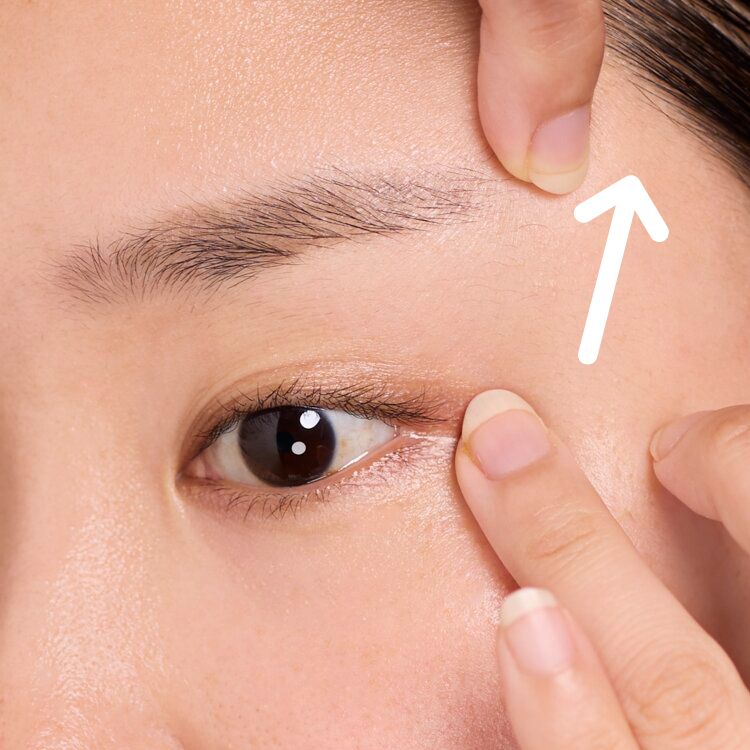 ![]() | アイクリームは、ゴーグルゾーンにムラなく塗り込むことが大切ですが、目の形や二重の線、目尻のシワなどにより塗りムラがでやすいパーツでもあります。そのため、まずはまぶたの上下に3箇所ずつ点置きをするのがおすすめです。こうすることで塗りムラを防ぎつつ、スムーズに塗り広げることができます。 |