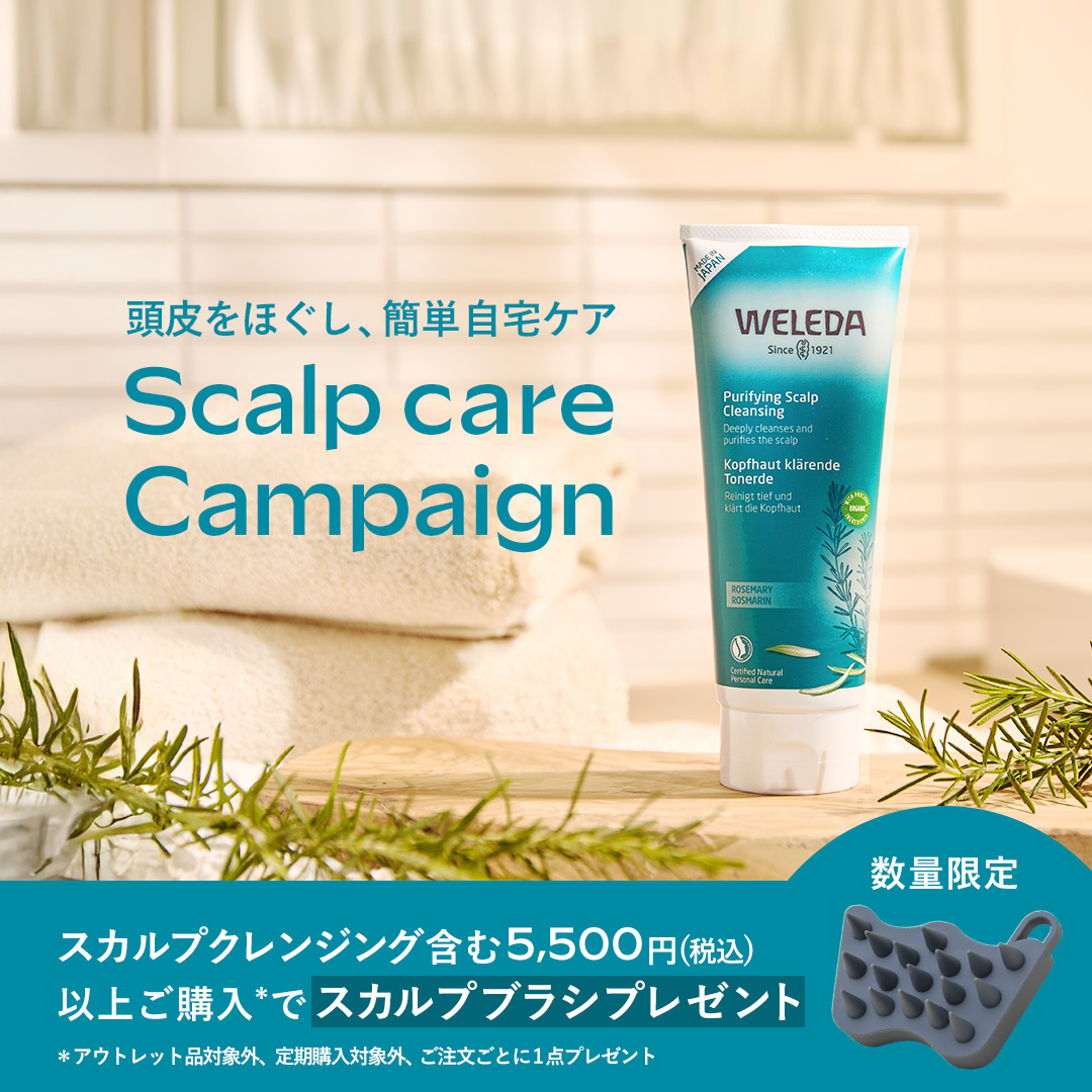 ただいま、「ローズマリースカルプクレンジング」を含む5,500円(税込)以上のご購入で、専用のスカルプブラシをプレゼント中です。