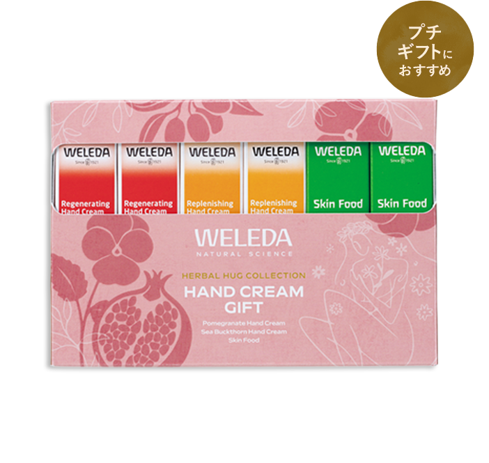 手肌の乾燥を潤す、ハンドクリーム2種と100年*愛されてきた多機能クリームのスキンフードのセット。自分用にも大切な人へのギフトにもおすすめです。*1926年生産開始