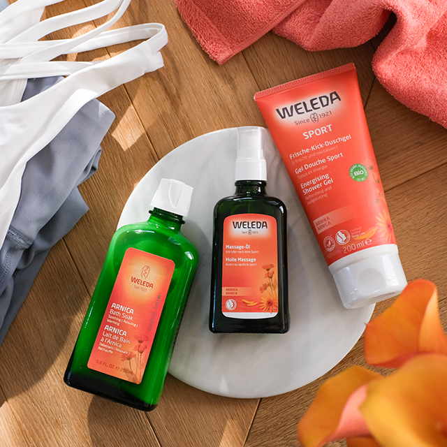 山岳地帯の草地で、厳しい山風に負けず華憐な花を咲かせるアルニカ。花部分には150種類以上もの有用成分が含まれます。アクティブなライフスタイルを支える植物として、90年以上にわたりヴェレダで使用されています。