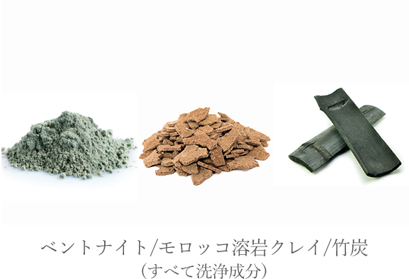 水、プロパンジオール、セテアリルアルコール、エタノール、水添ナタネ油アルコール、オリーブ果実油*、(C15−19)アルカン、(クエン酸/乳酸/リノール酸/オレイン酸)グリセリル、ホホバ種子油*、ベントナイト、炭、モロッコ溶岩クレイ、ローズマリー葉エキス*、アロエベラ液汁*、アンズ核油、ヨーロッパシラカバ葉エキス、ナギイカダ根エキス、キハダ樹皮エキス、香料**、メントール、ベタイン、クエン酸、キサンタンガム、アラビアゴム、ステアリン酸グリセリル、ココイルグルタミン酸Na、ココイルグルタミン酸2Na、ミリスチン酸ポリグリセリル−10