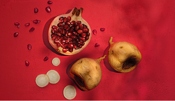 花も実も同時発生的に成熟するざくろ。過去と未来、つまりは若さと成熟の共存と考え、ヴェレダではその魅力を併せ持つ、人生の半ば頃に適した植物と判断。40代からのプレミアムなエイジングケア(年齢に応じた健やかな肌ケア)に取り入れています。