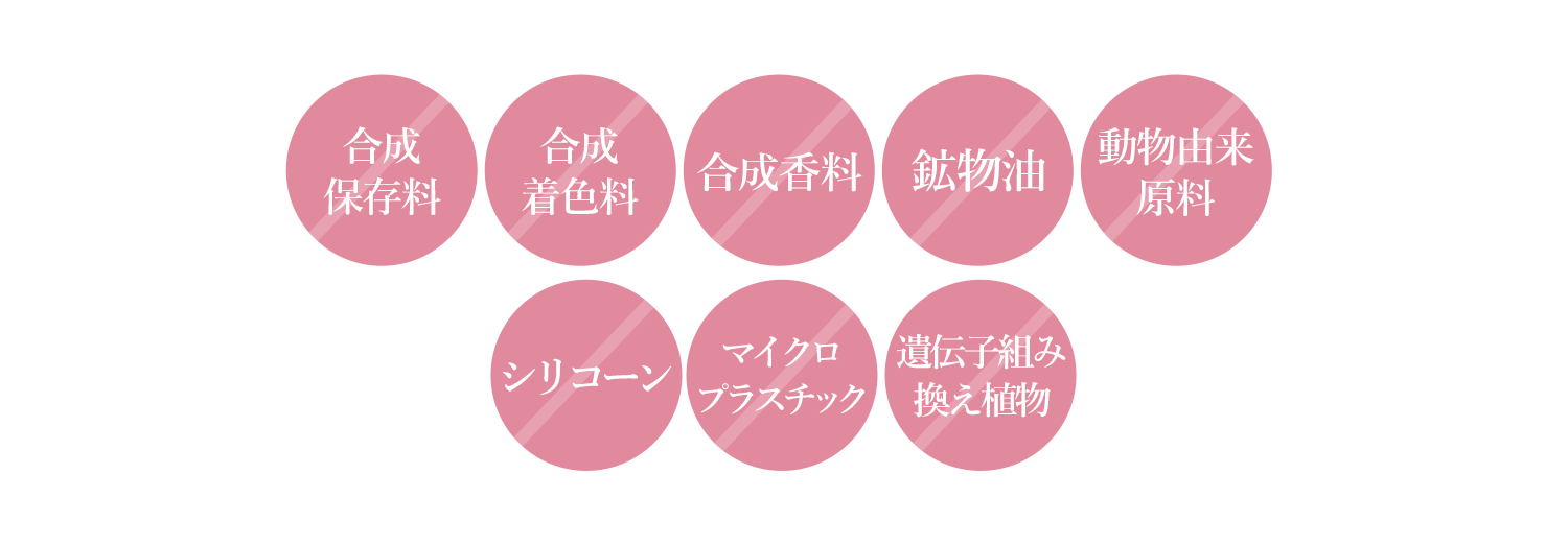 水、エタノール、グリセリン、ゴマ種子油*、アロエベラ液汁*、ベタイン、ザクロ種子油*、キビ種子エキス*、オリーブ葉エキス*、ヒマワリ種子油*、β-グルカン、ペクチン、キサンタンガム、クエン酸、トコフェロール、加水分解レピジウムメイエニ根*、マルトデキストリン*、シリカ、香料**