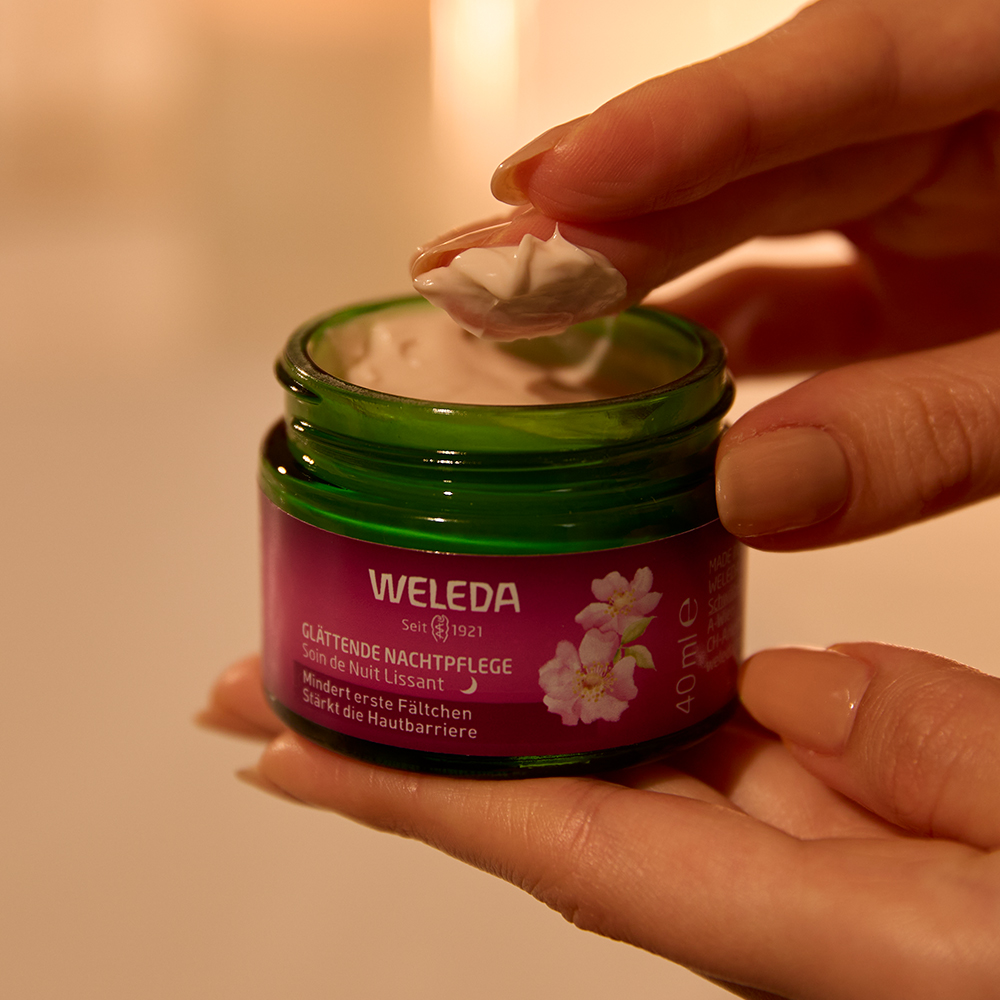 化粧水はゆらぎがちな肌に植物性セラミド*3が肌バリアを補い、ナイトクリームのスギナエキス*4などが肌を乾燥から守り、肌荒れを防ぎます。