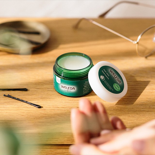 髪のパサつきを防ぎながら、自然な艶とウェット感を与えるオーガニックヘアワックス。