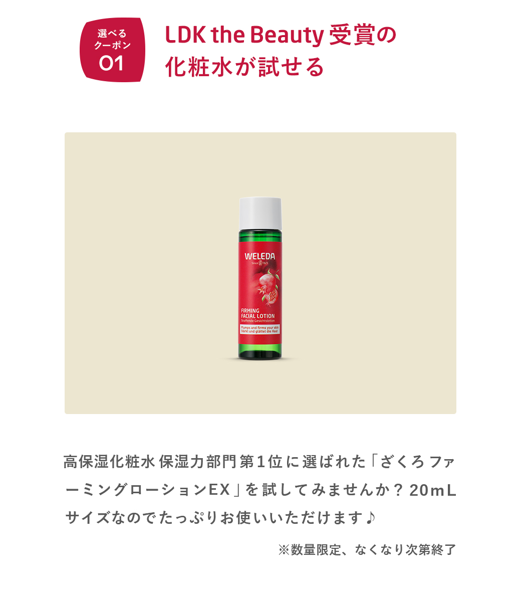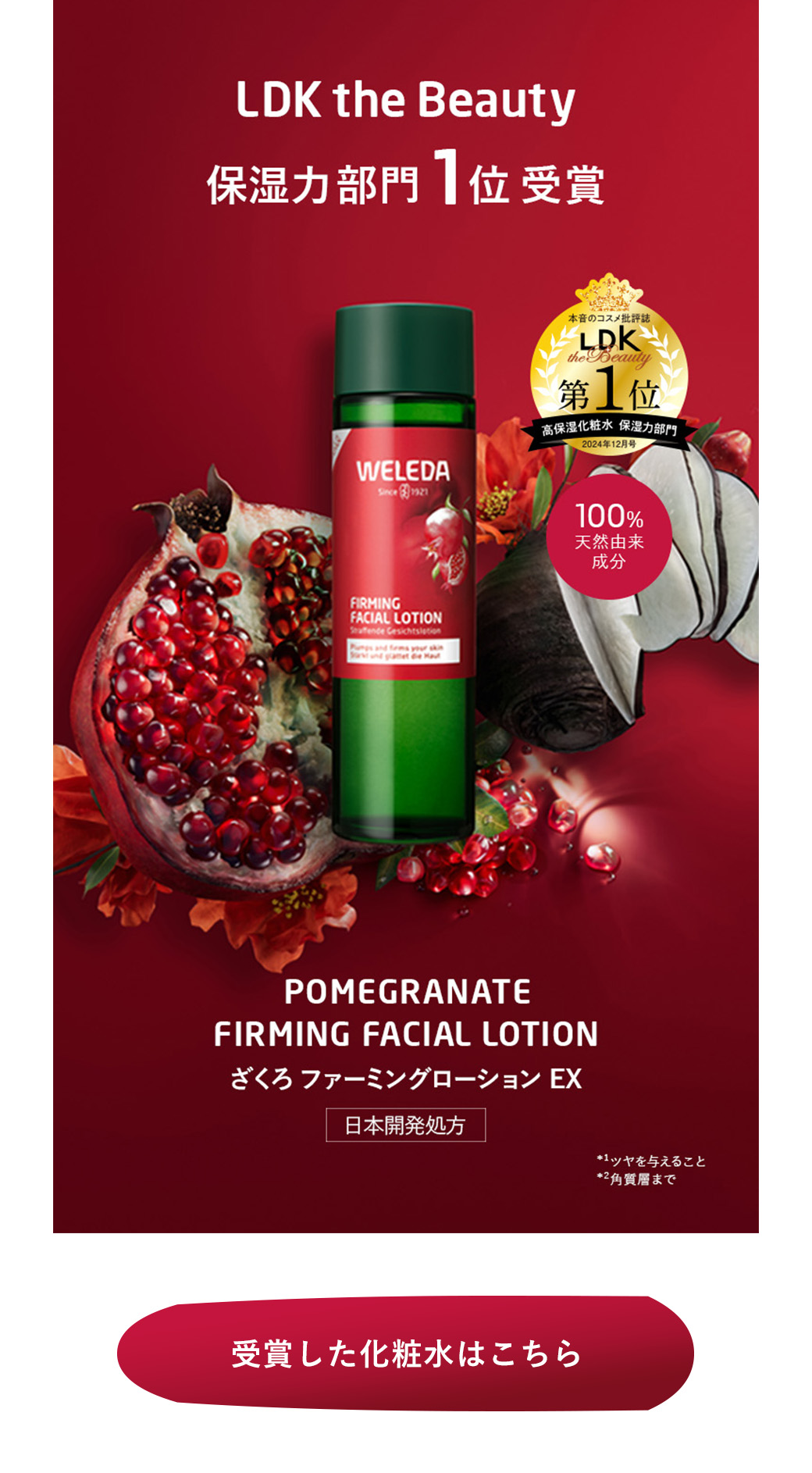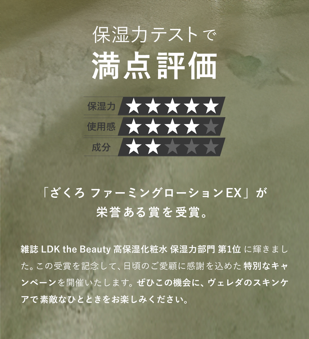 > 【1周年】ざくろ ファーミングローション LDK the Beauty 保湿力部門1位受賞記念!選べるクーポンキャンペーン